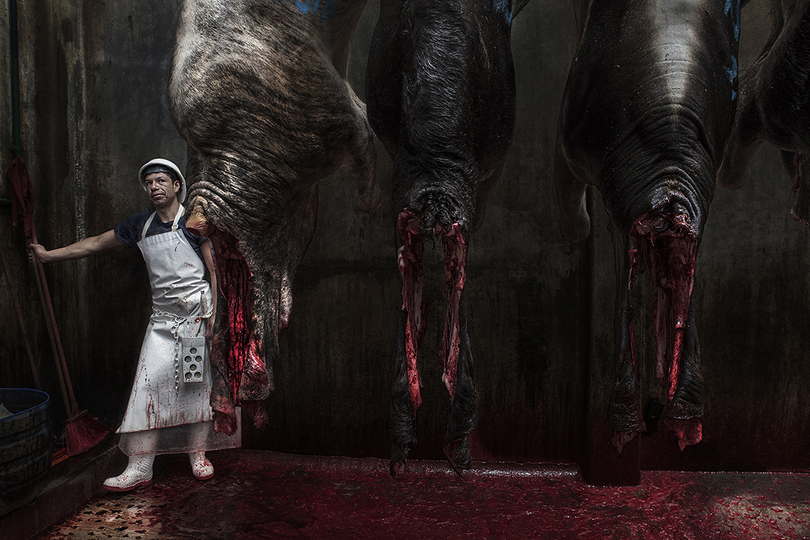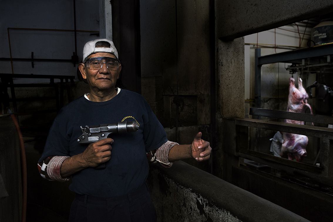 R.M. trabajador en un rastro de una ciudad de Colombia